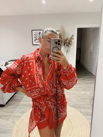 Red Bandana Cropped Shirt